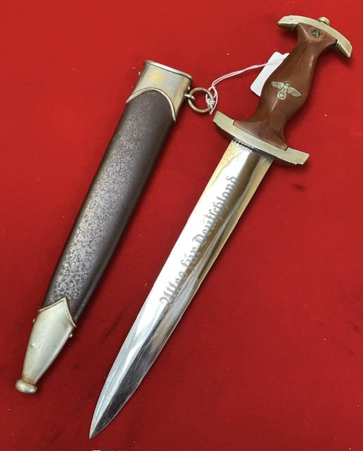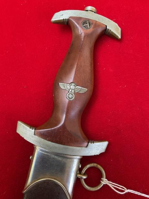 Nice rare maker SA daggers, rarity of 8, lovey bright blade, no nicks and very minor wear near cross guards. Dent free scabbard, all nickel fittings, screw sun turned, Grip fits excellent to cross guards. Nice scarce maker dagger an dun messed with.
