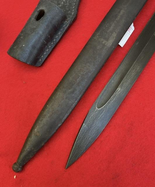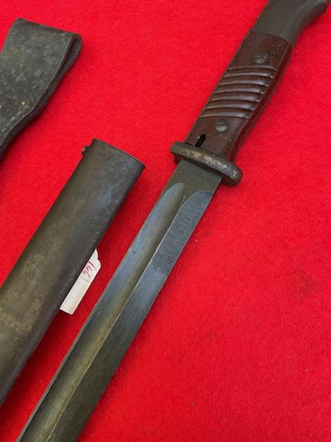 Alex Coppel late war K98, matching number,blade in near mint condition and shows typical late war construction. Dent free scabbard, grip in excellent condition. Press stud in good working order, and comes with leather frog.