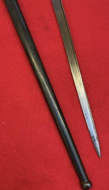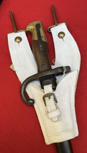 A hard to find frog, in stunning mint condition, Gras 1874 bayonet with French Republican Guard and Gendarmerie frog. Bayonet dated 1876, nice blade in dent free scabbard. With rare frog.