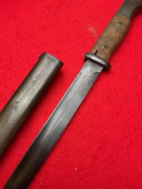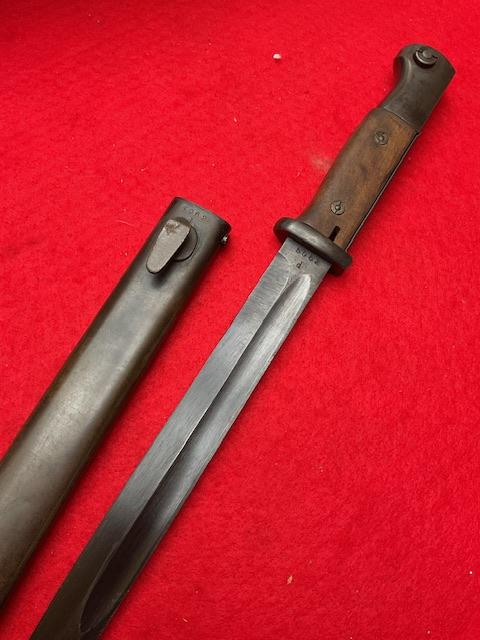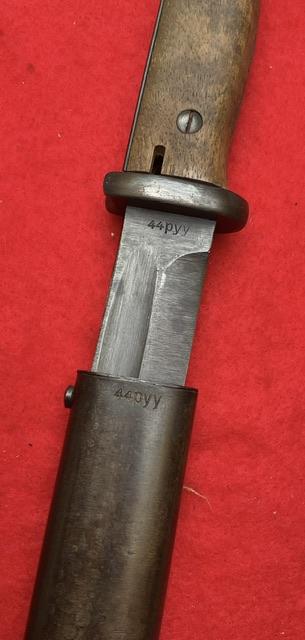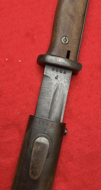 Rare maker dated 1944, blade in near mint condition, dent free scabbard, excellent wood grips and press stud in good working order. Rare item Age restricted item