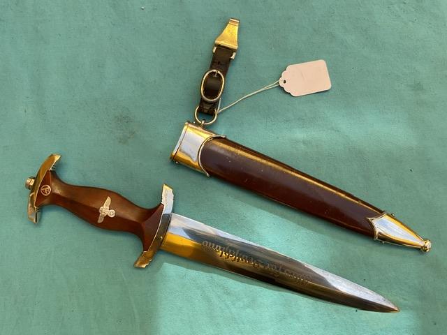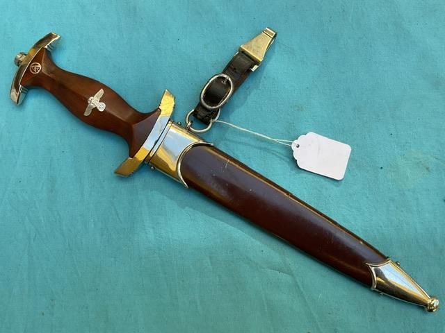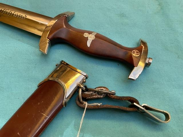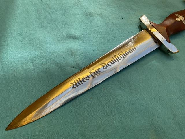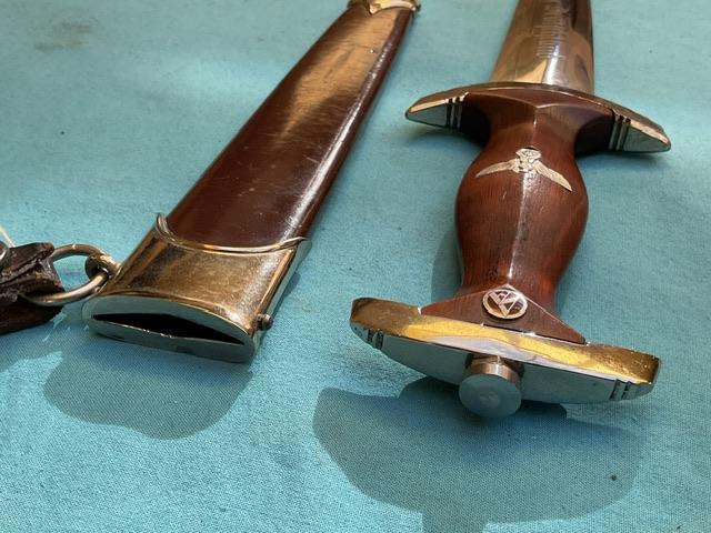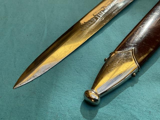 Cross guards are nickel , scabbard fittings are plated but no loss of plating.Comes with RZM marke d1 piece hanger. Overall a very nice dagger.