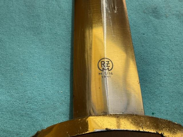 A stunning RZM SA, blade Mint- with minor runner marks, cross grain but no nicks. Scabbard in excellent condition with minor nicks to paint. Grip is chip and dent free, and fits well to the cross guards.