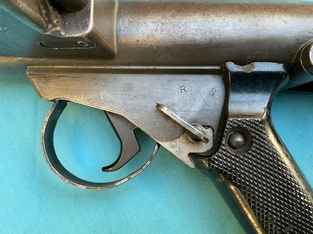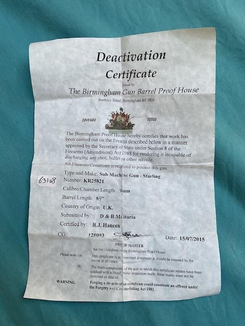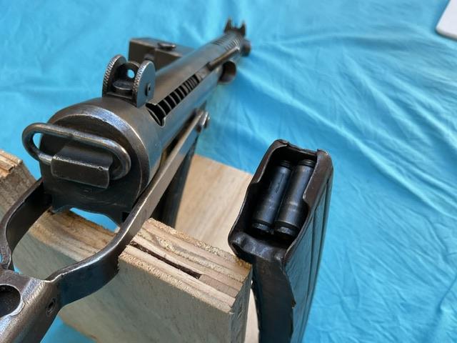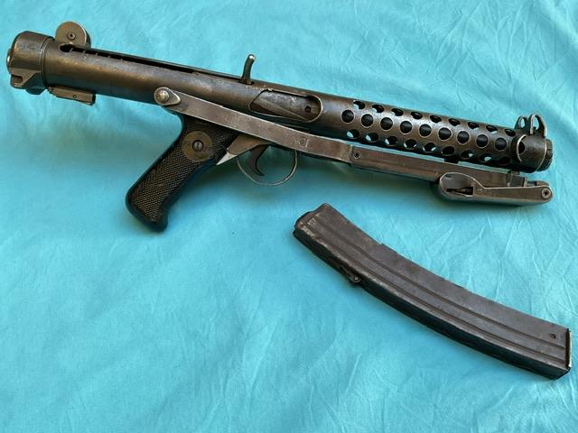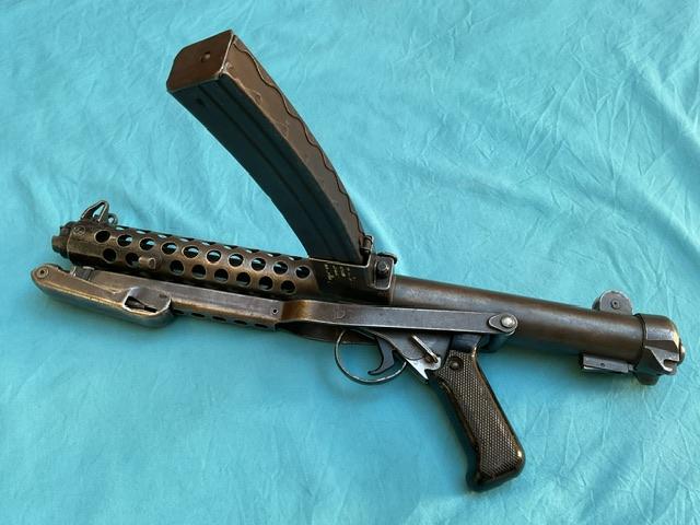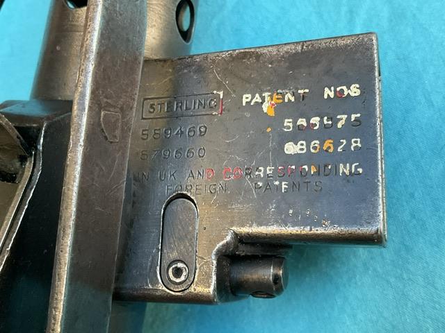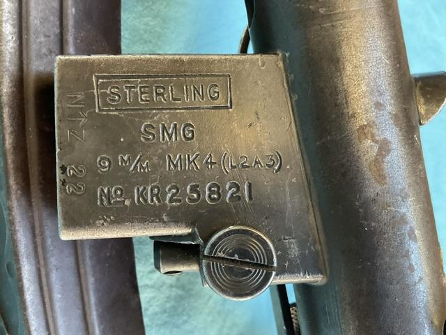 A nice example of an old spec Sterling machine gun, cocks and dry fires, folding stock folds easily. Nice rare item