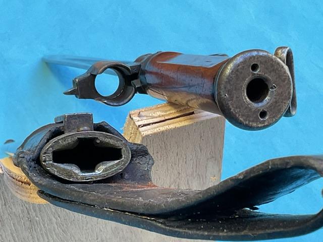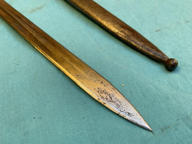 The hardest of the 1935 series to find, blade is in excellent condition. Scabbard has Llosa most of paint finish, grip in excellent condition, release catch in good working order. Comes with unusual frog which is no moulded to scabbard so hav enot attempted to remove. Nice rare item.