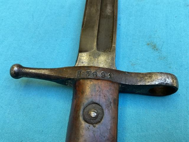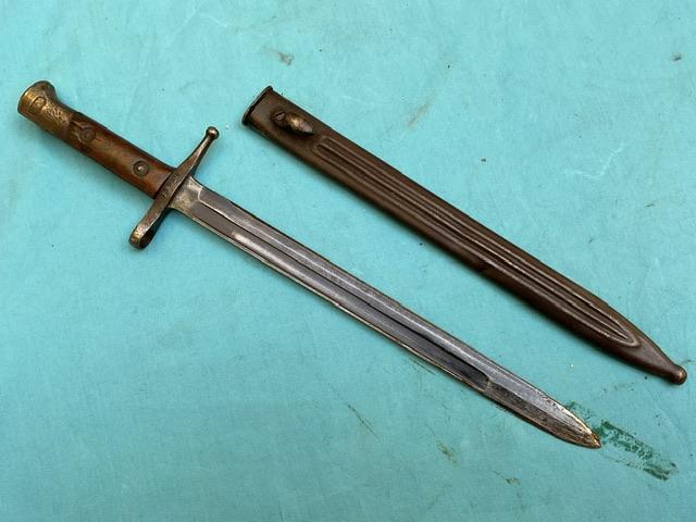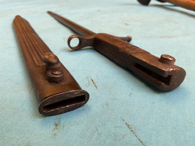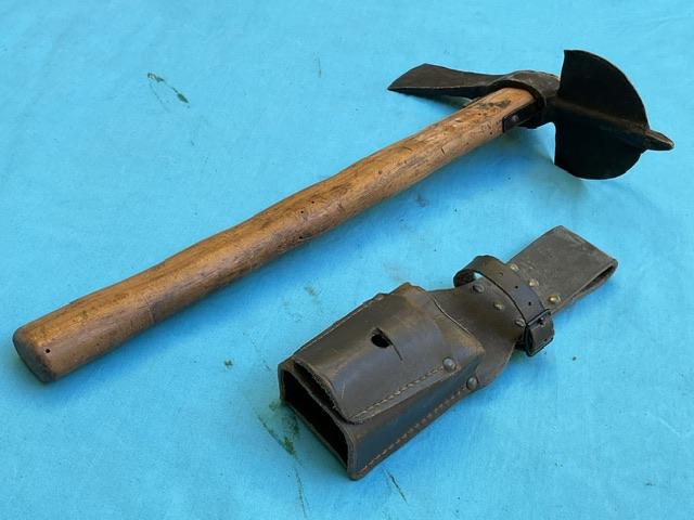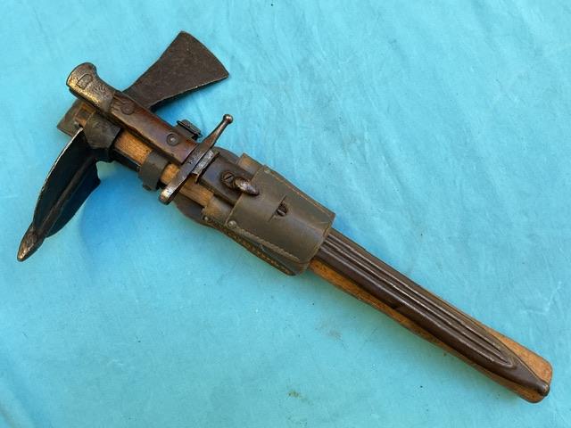 A very rare and excellent example of a WW1 Italian bayonet, entrenching tool, and frog.