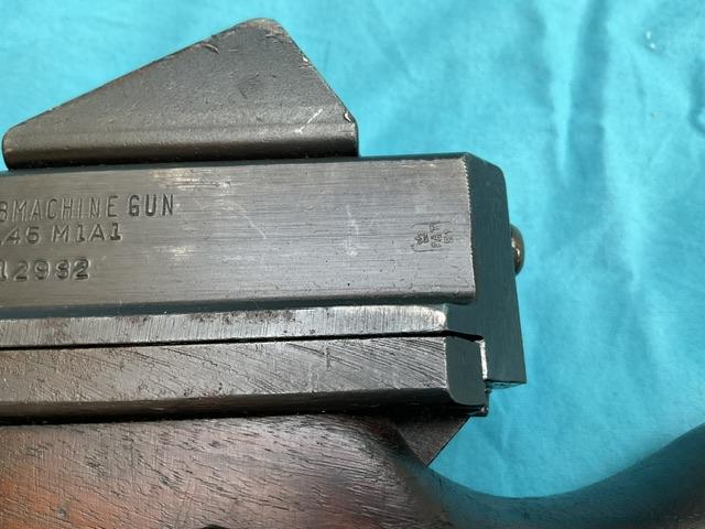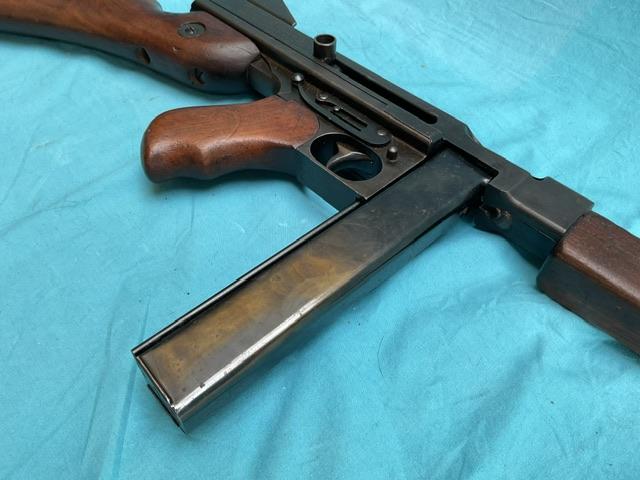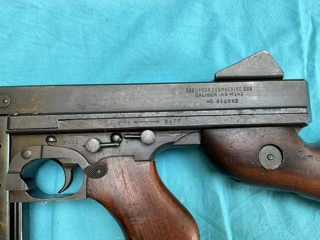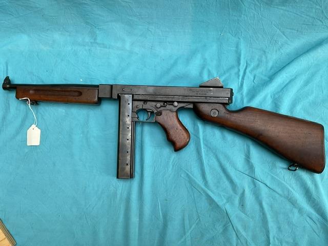 A nice example of an old spec M1A1 Thompson. Dry cocks and fires, repair to stock but very professionally done. Nice example