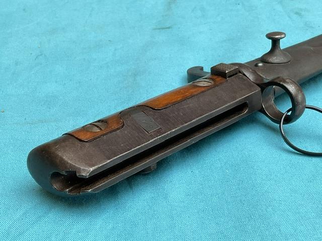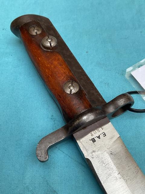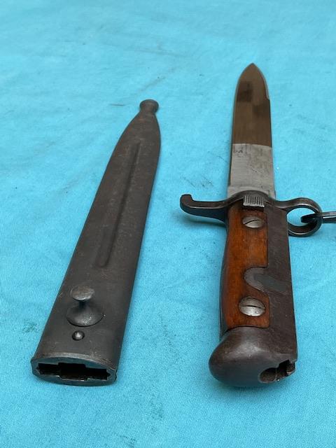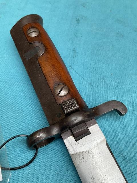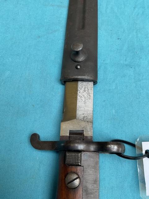 Very rare bayonet to find, marked 1502 on blade which is in excellent condition. Scabbard is dent free, release catch in working order. Rare item