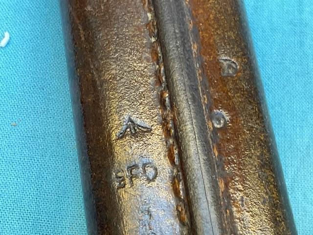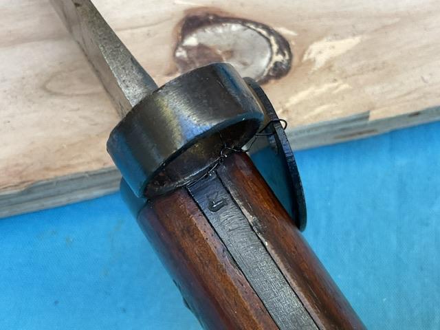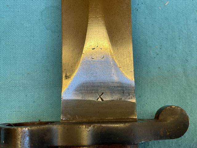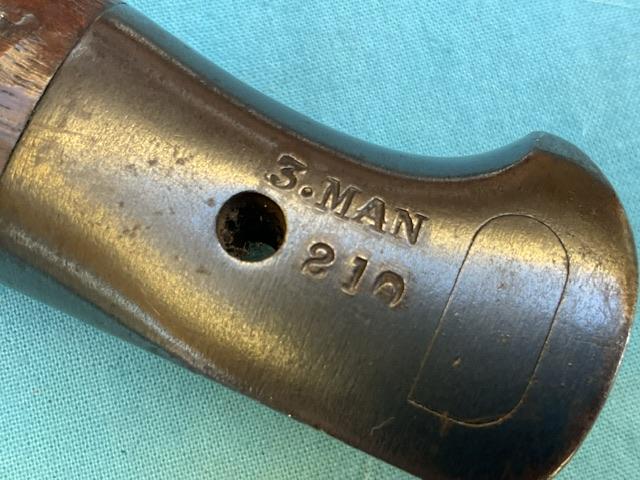 Nice 1903 bayonet, blade in good order, marked to 3 Man on pomel, scabbard in excellent condition. Very nice example