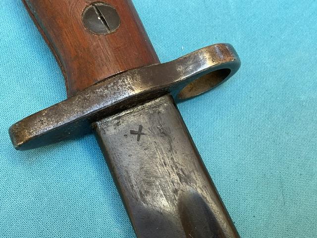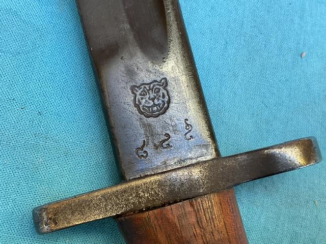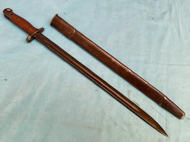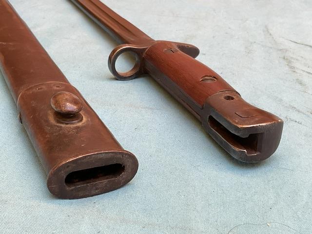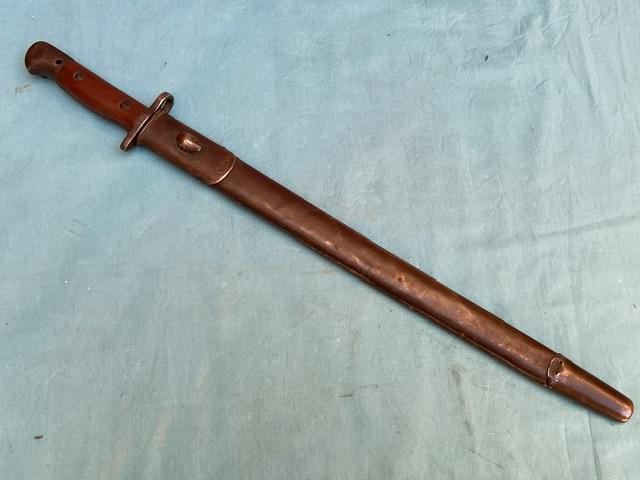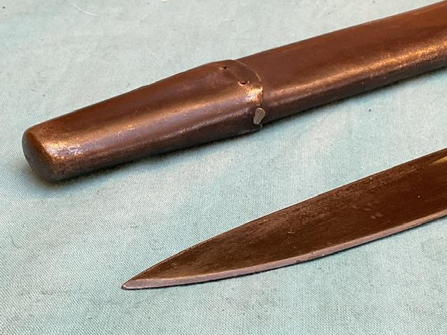Nice example, blade is in excellent condition. Excellent wood grips, press stud in good working order, Excellent metal scabbard, Scarce item
