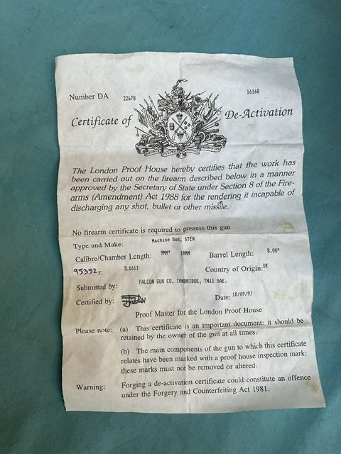 Old spec Mk 2 sten, dry cocks and fires, in excellent condition.