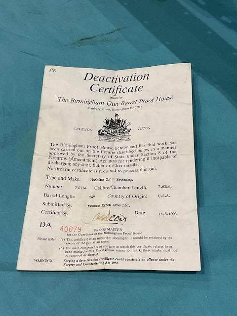 A 1993 deactivated Browning machines gun, dry cocks and fires. Very scarce item