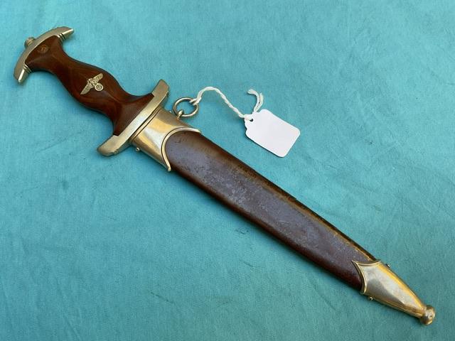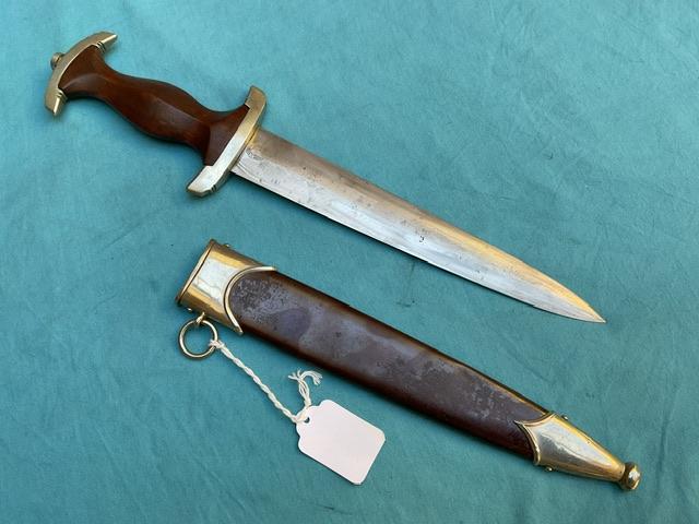 A fully erased Rhom dagger by Eickhorn, blade is nick free but shows some wear and minor staining.