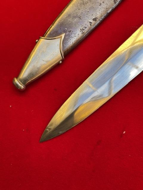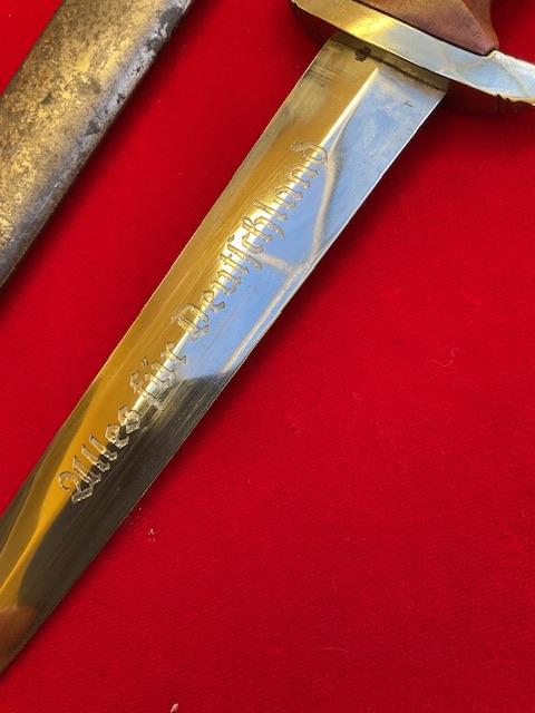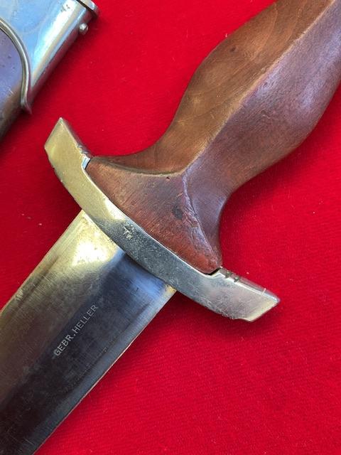 Nice SA by Geb Heller, blade in excellent condition, no nicks or rust, dent free scabbard, slight dent to ball, all nickel fittings, un turned screws, Grip to cross guard nic edit, no chips. Overall EX + item