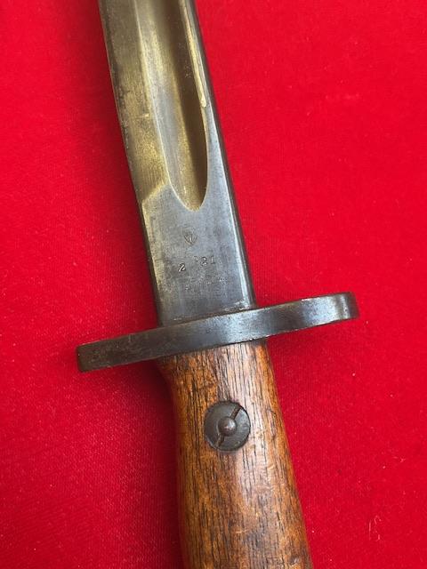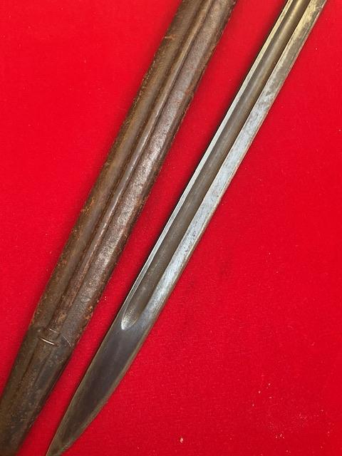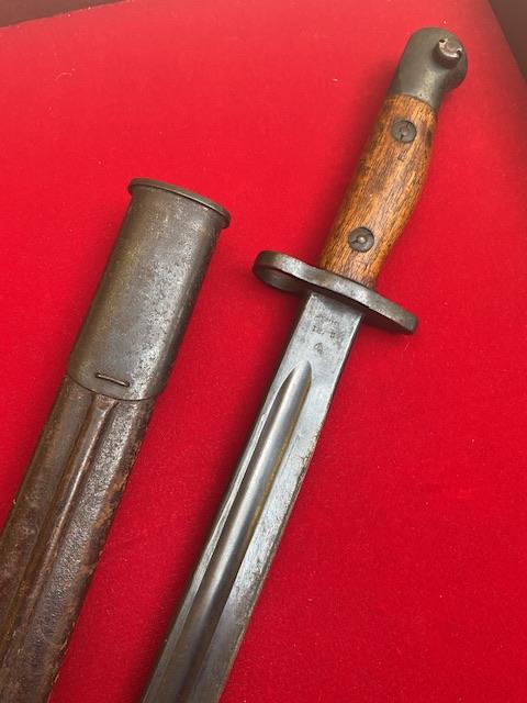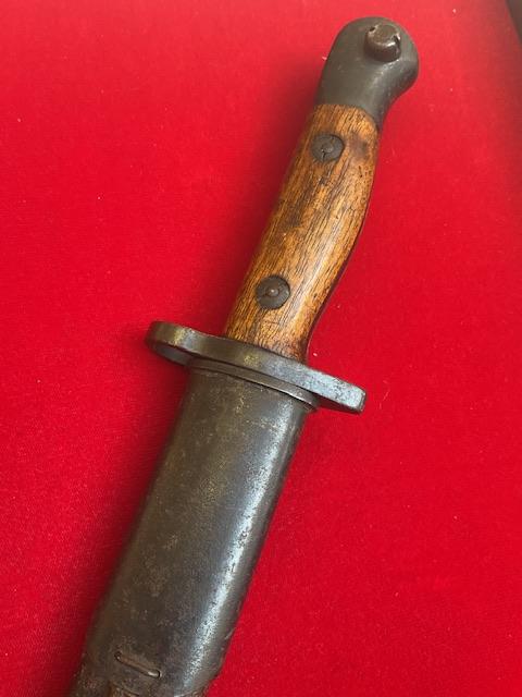 1907 bayonet by Lithgow, number stamped on pomel, press stud in working order, nice blade and scabbard