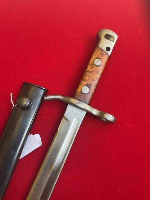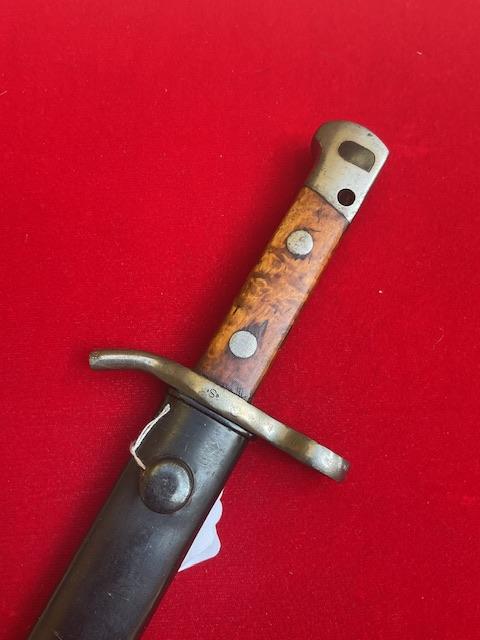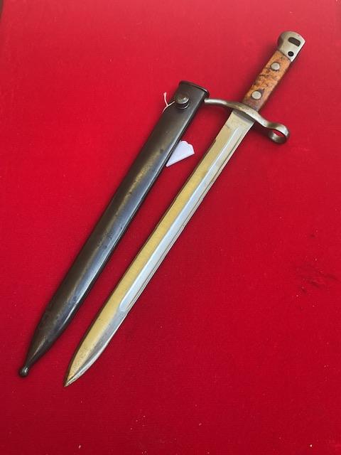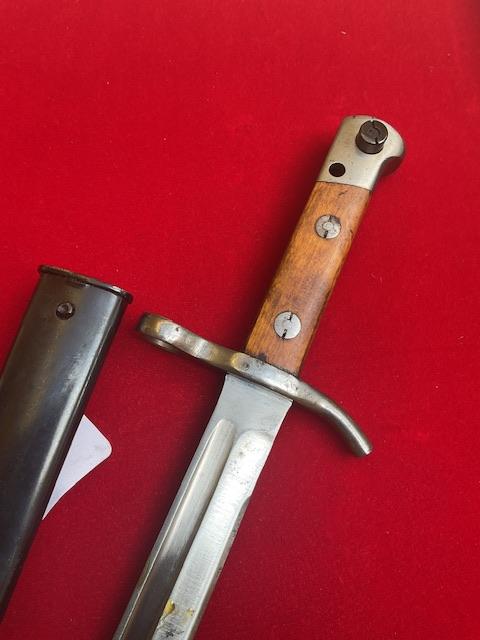 Nice example of 1927 Finish bayonet, press stud in working order, nice blade blade and steel scabbard.