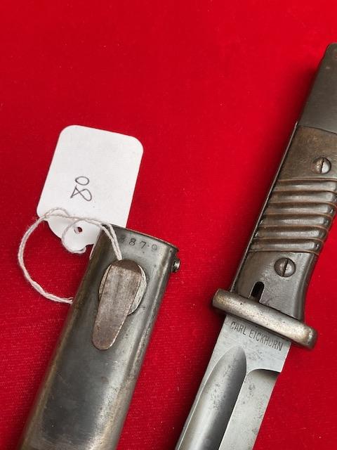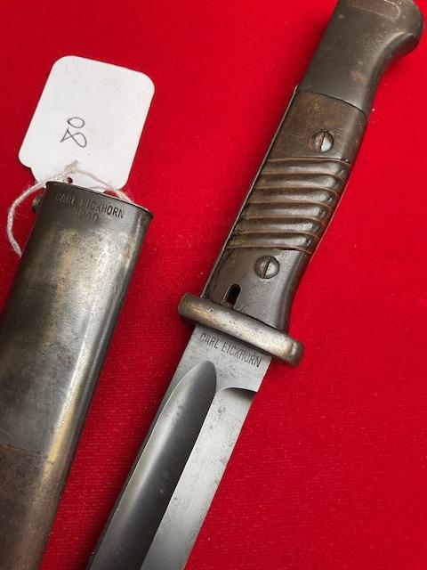 1940 dated K98 by Carl Eickhorn, scarce maker SMF for that date.nice blued blade, press stud in working order, dent free scabbard