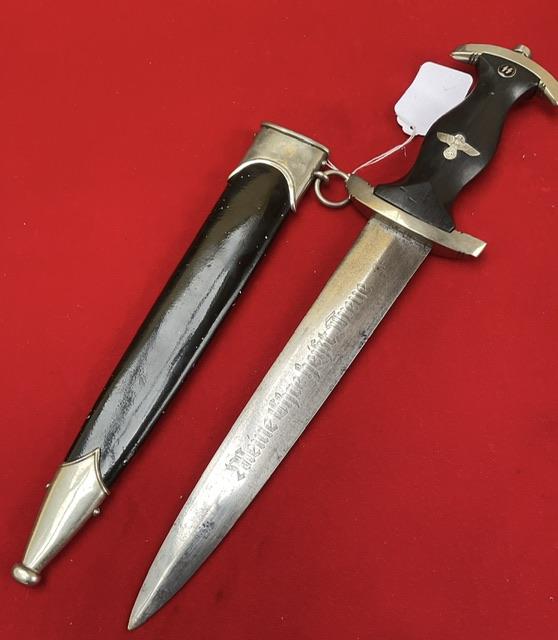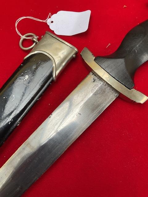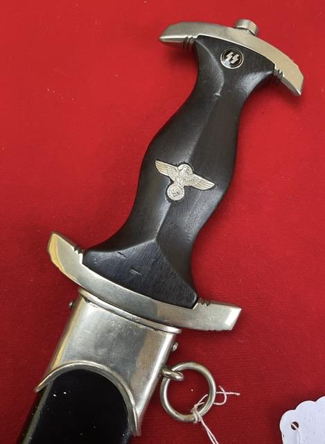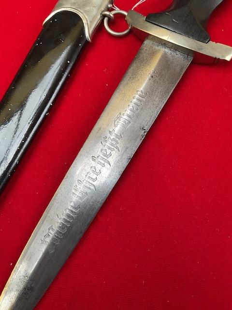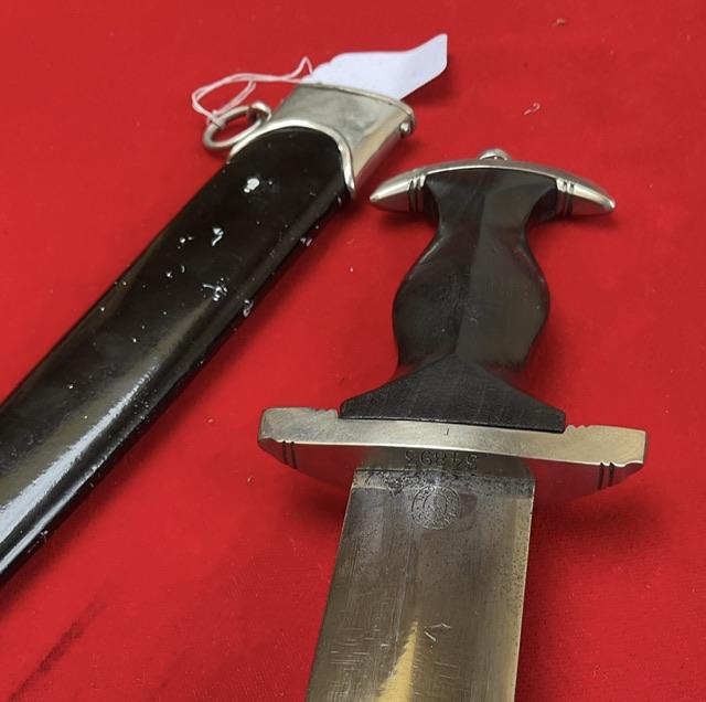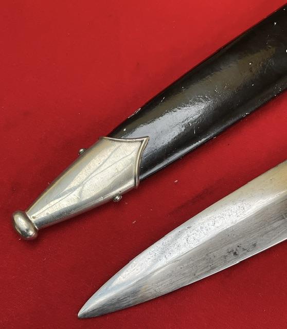 An erased Rhom Boker dagger, blade is in good condition, dent free painted scabbard, nice fitting grip to cross guards. But the dagger is numbered under the cross guard which is the best feature of this dagger, so possible research ?and priced accordingly to its condition.