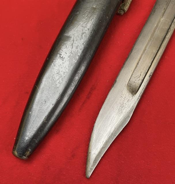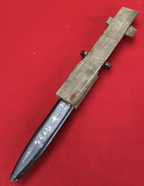 A good condition L1A3 bayonet, press stud in working order, comes with frog.