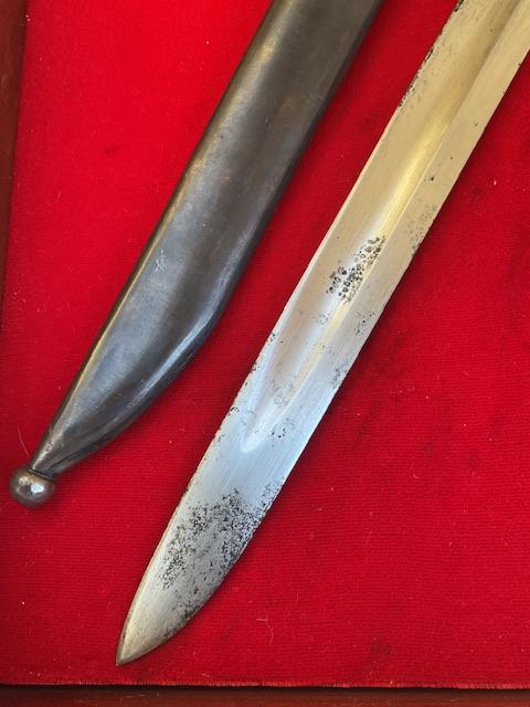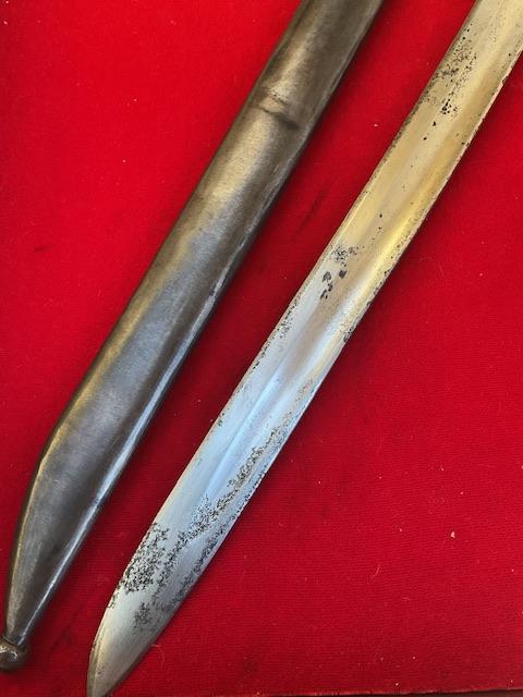 Blade in excellent condition, excellent metal scabbard, leather grips nice and secure, press stud in good working order