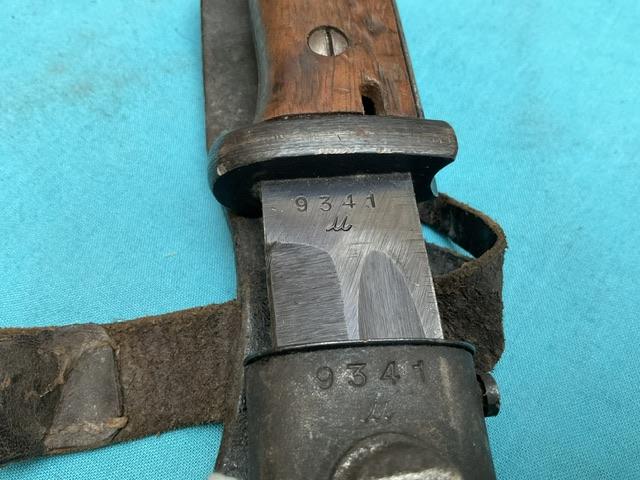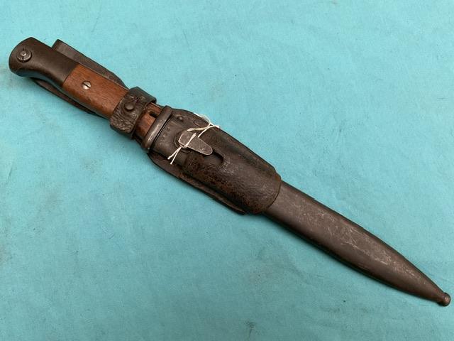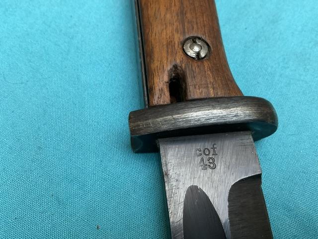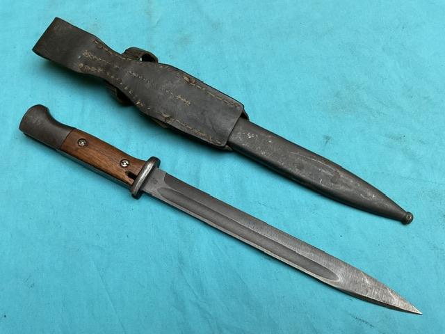K98 dated 1943 matching number bayonet by cof, blade is excellent condition with very minor wear.