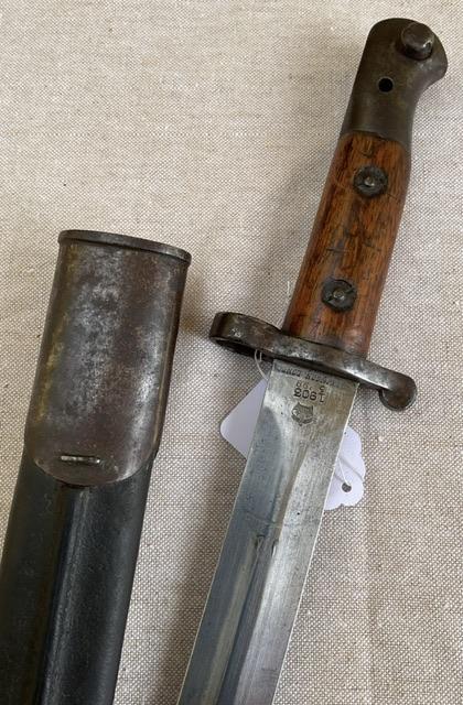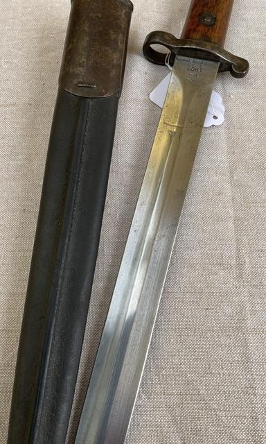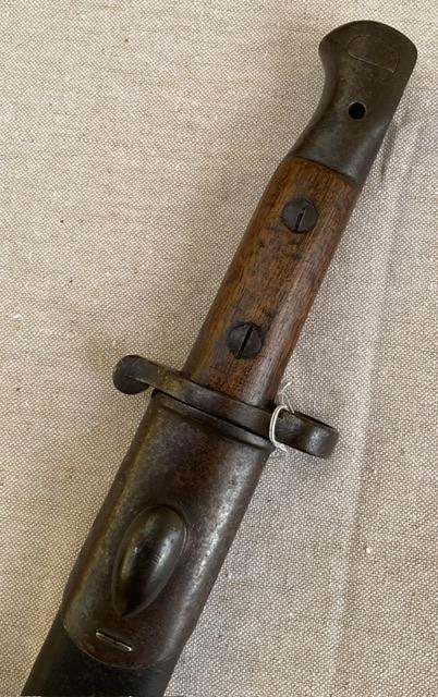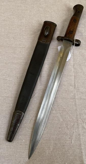 Nice bright blade, no nicks or rust marks, excellent leather scabbard, top and bottom mount nice and secure, press stud in good working order. Marked 69. P 73 on pommel