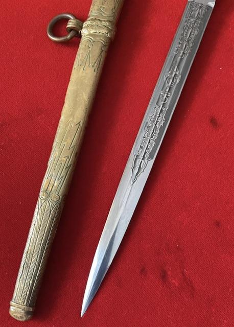 Excellent blade, fouled anchor, scarce Eickhorn trade mark, lightning blast scabbard, wire to grip nic wand tight.