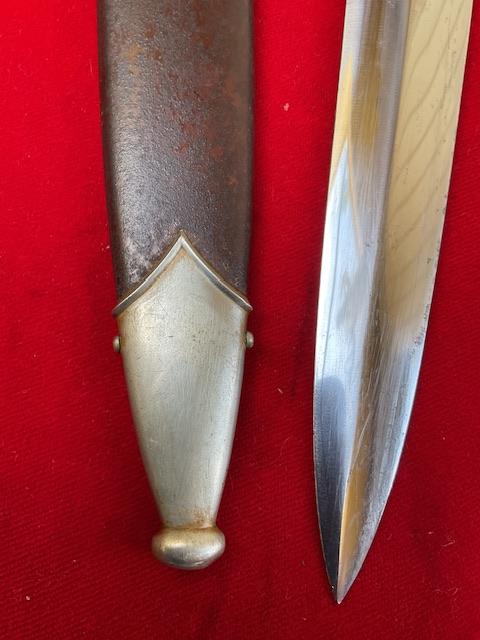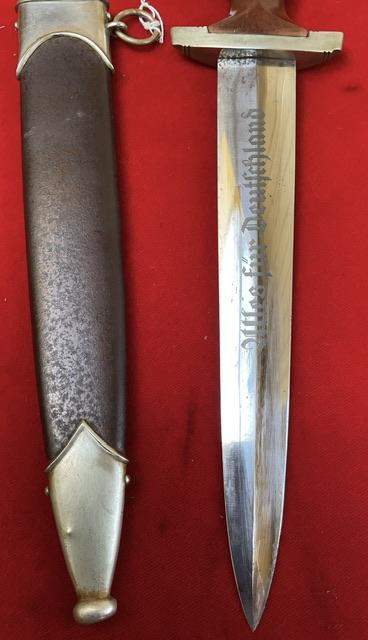 Nice rare maker SA daggers, rarity of 8, lovey bright blade, no nicks and very minor wear near cross guards. Dent free scabbard, all nickel fittings, screw sun turned, Grip fits excellent to cross guards. Nice scarce maker dagger an dun messed with.