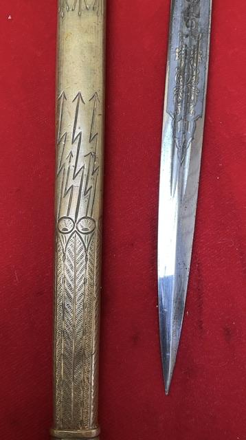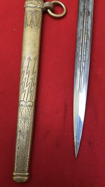 Eickhorn, trademark, Fouled anchor blade, Blade in excellent condition, no nicks or rust marks. Lightning blast dent free scabbard. Grip wire nice and secure. Requires age verification.