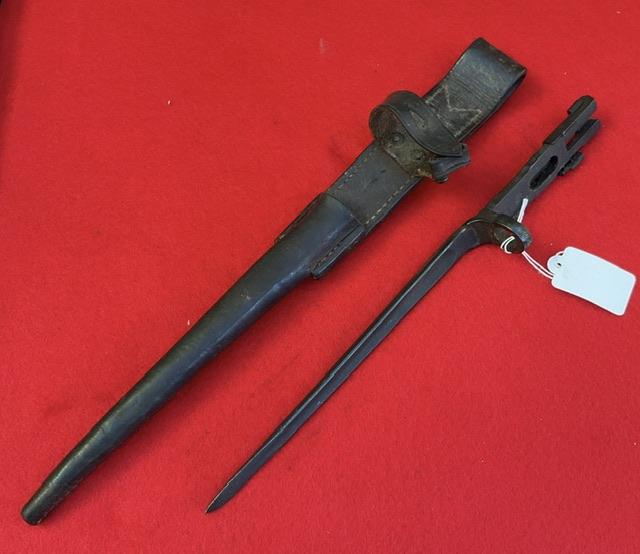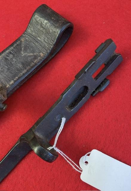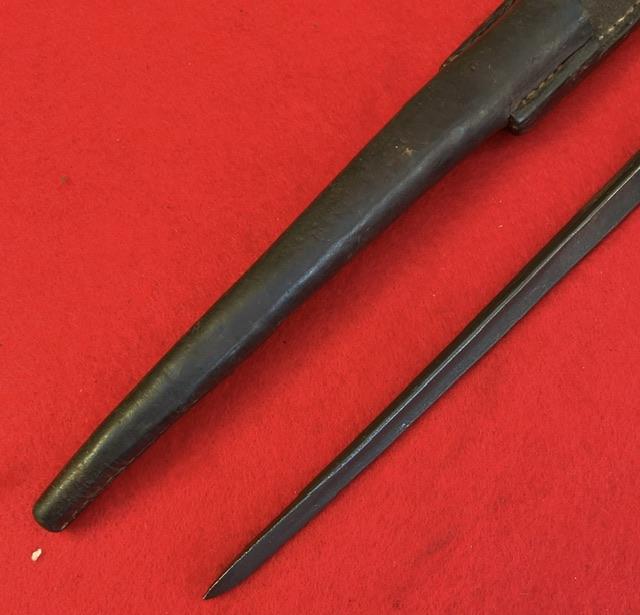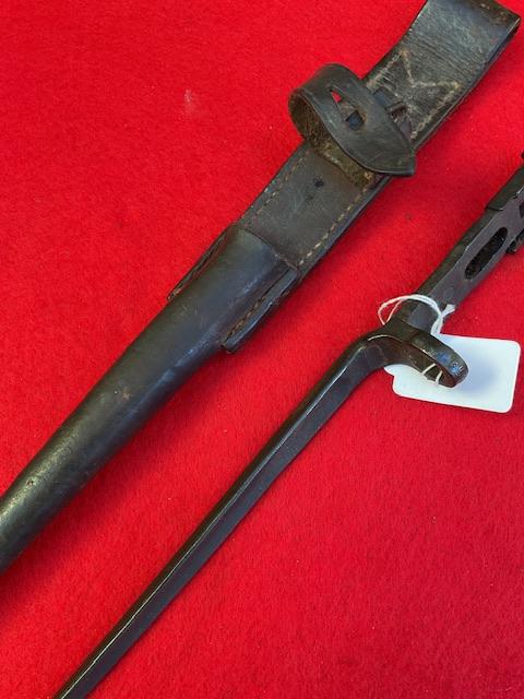 A very nice example of this bayonet. Bayonet in excellent condition. Scabbard in perfect condition, even retaining strap in excellent condition. Stitching to scabbard fully intact. Nice item Age restricted item