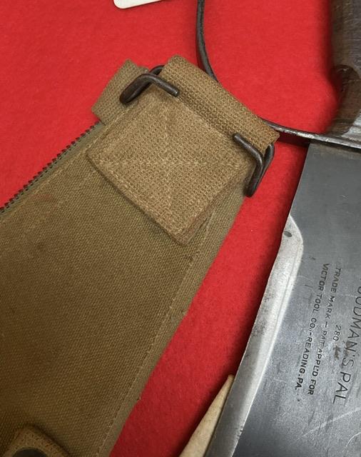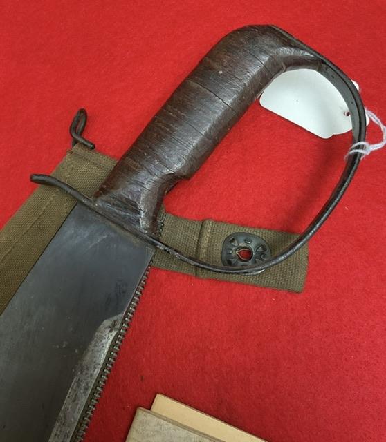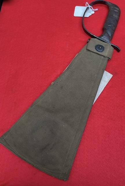 A mint example of Woodmans Pal Machette, near mint condition, canvas scabbard, comes with 2 pamphlets. Scarce item Age restricted item