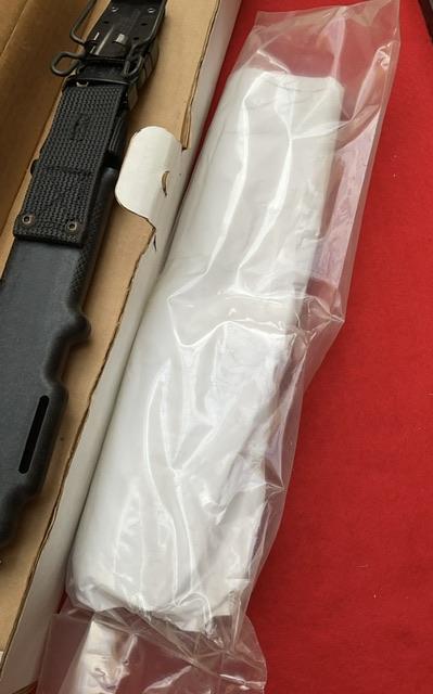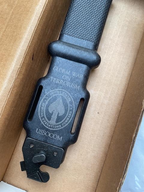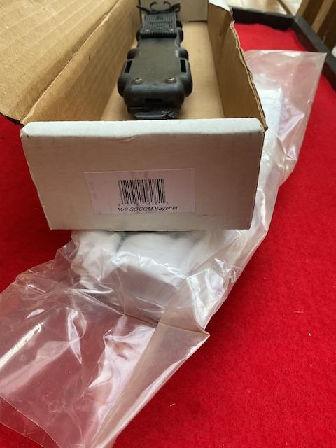 I bought this about 12 years ago at the SOS show in USA, Boxed , mint condition, packet never opened. Very rare commemorative M9 bayonet. No i will not open packet Age restricted item