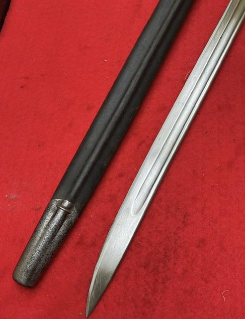 Nice bright blade, nick and rust free.excellent leather scabbard, wood grips in good order and press stud in good working order. Marked RAF on pommel. Age restricted item