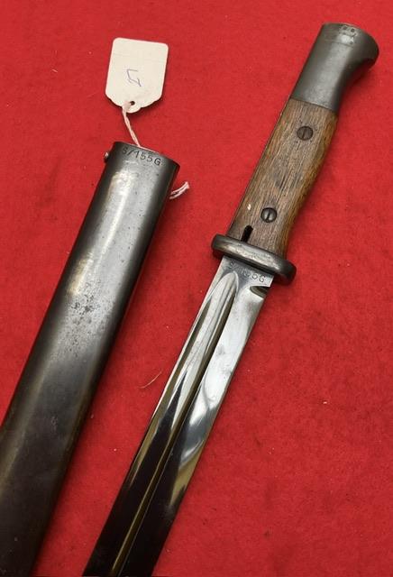 S155G E And F Horster, stunning blued blade, nick free, dent free scabbard, excellent wood grips, press stud in good working order. Age restricted item