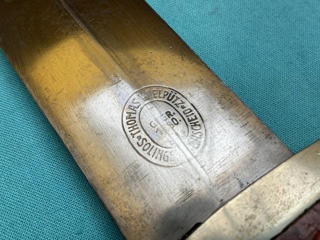Rarity of 9.Blade is ex- condition, bit stained but no nicks or rust marks.Nice anadozied scabbard still retaining some laquer. Screws un turned to fittings.Grip in EX condition and fits well to cross guard. Overall condition EX for rare maker.