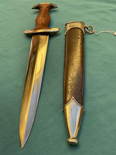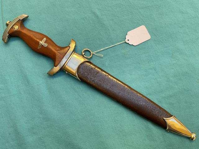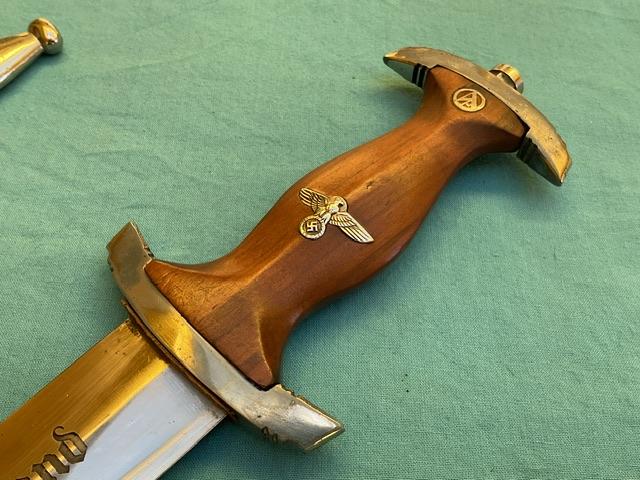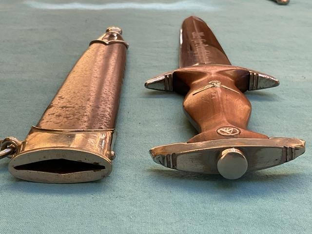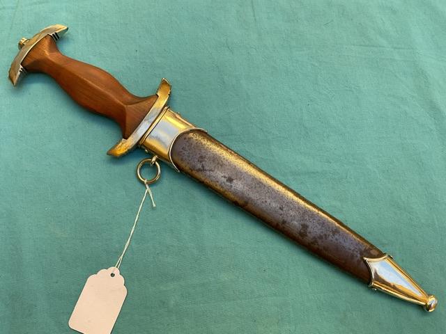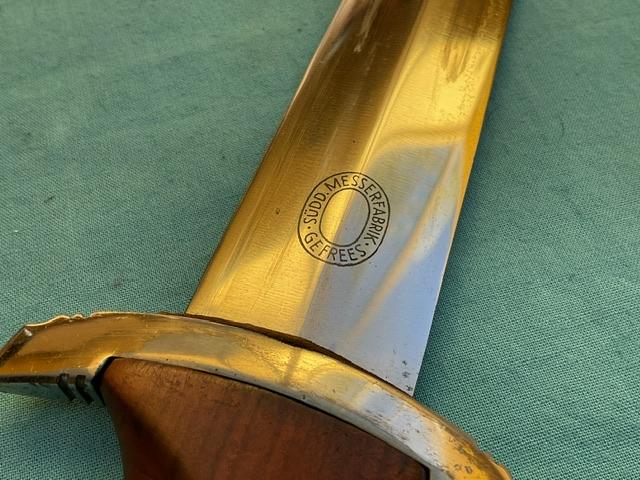 Rarity of 7 , blade in mint- condition, showing cross grain, no nicks or rust. Nice anodised scabbard, minor rust spots, grip shows usual shrinkage but nice fit to cross guards. All fittings are nickel.
