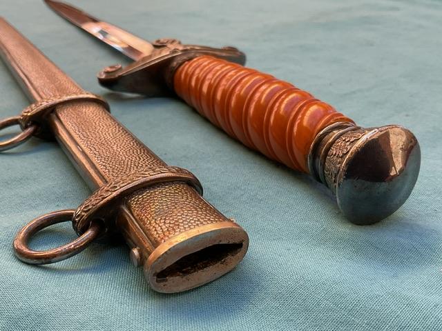 A rare maker of army dagger, blade Is in excellent condition, nice orange grip. Hard maker to find, large trademark