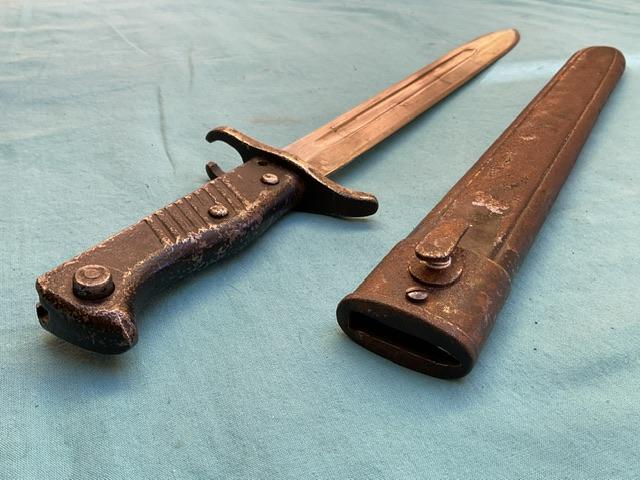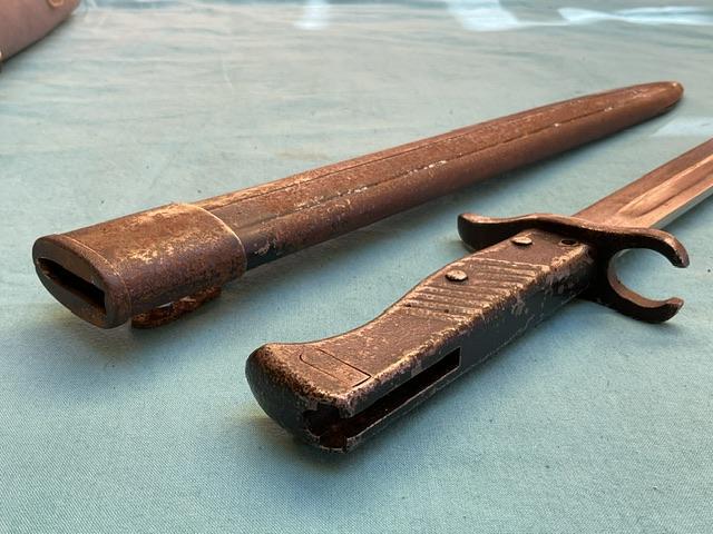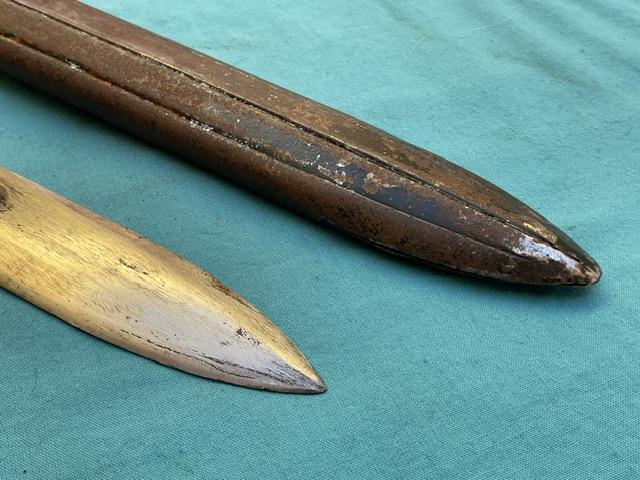 This variant has the shorter fuller, item 44 Carter vol 111, Scarce item rated 5 in rarity, with correct scabbard.